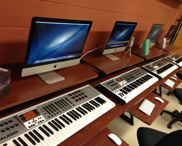 VisibleMusic can bring mobile music technology to any setting, and/or work with existing tech on site. Many projects revolve around getting a school up to speed on using the tech it already has, commonly amazing free platforms like GarageBand and Bandlab.