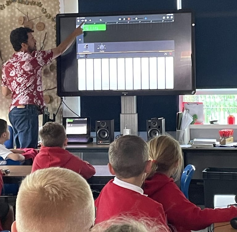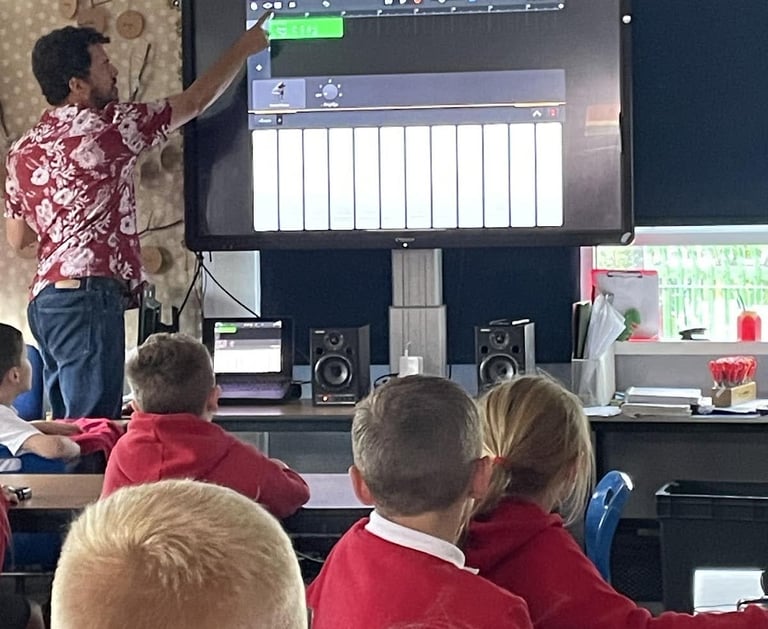 VM's super-popular workshops based on the FREE iOS app GarageBand. Delivered in over 30 South Wales Primary schools to date, as well as Secondary, FE and SEND settings.