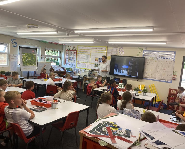 "Alex was very passionate and knowledgeable about GarageBand and encouraged the children to have a go and experiment with the app without the worry about making mistakes. Alex was very engaging and developed a lovely positive relationship with the children and they looked forward to him coming every week."